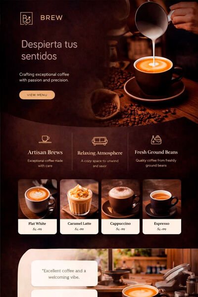 Estructura persuasiva, botones de acción claros y textos que convierten visitantes en clientes.